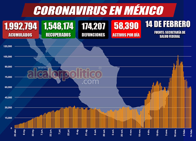 México sumó, al corte de este 14 de febrero, un total de 174 mil 207 muertes por Covid-19, según informaron autoridades de la Secretaría de Salud.
