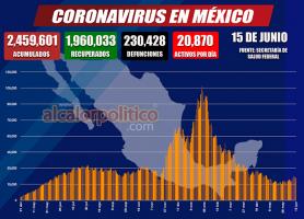 Al corte de este martes 15 de junio, México acumuló 230 mil 424 muertes por Covid-19, esto es, 239 fallecimientos más que el día anterior, informaron autoridades sanitarias.