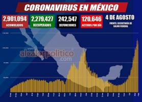 En su informe técnico diario, la Secretaría de Salud informó que, al corte de este miércoles 4 de agosto, México acumuló a 242 mil 547 muertes por COVID-19.