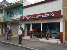 Elementos de la Policía Naval y Estatal, en apoyo al personal de la Dirección de Comercio del ayuntamiento de Veracruz, realizaron un operativo de inspección de los locales de la Plaza de la Tecnología, en la ciudad de Veracruz. Ocurrió la tarde de este lunes, entre las calles Francisco Canal y Nicolás Bravo, en la colonia Centro.