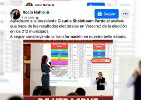En el video se expone que la propia presidenta Claudia Sheinbaum, durante una “mañanera del pueblo”, reconoció el triunfo de Movimiento Ciudadano en 41 municipios, incluidos Papantla y Poza Rica. “Ese mismo día, la gobernadora (Rocío) Nahle desde sus redes sociales agradece el buen análisis que hace la presidenta de la República sobre los resultados de Veracruz”, se destaca.