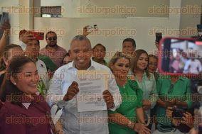 La marcha culminó con su llegada al Organismo Público Local Electoral (OPLE), donde presentó formalmente su documentación para contender por la alcaldía en las próximas elecciones.
