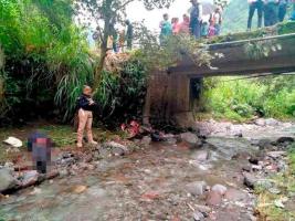 En una motocicleta negra marca Italika circulaban un hombre identificado como José Miguel A. F., de 55 años de edad, un joven y un menor de edad. Al descender sobre la carretera, a la altura de la comunidad Metlác Hernández, el piloto perdió el control, salió de la cinta de rodamiento y cayó de un puente al paso del río.