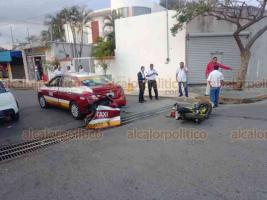 En calles de la colonia Playa Linda, en la zona norte de la ciudad de Veracruz, hubo un percance vial entre una unidad de alquiler y un motociclista, dejando dos personas lesionadas y daños materiales cuantiosos, movilizándose personal de la Cruz Roja y de Tránsito Municipal.