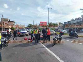 La mañana de este martes se registró el choque de una motocicleta y un auto particular en el bulevar Xalapa-Banderilla, a la altura del cuartel de la Guardia Nacional en la colonia 21 de Marzo, con dirección hacia SEFIPLAN, dejando como saldo 2 personas lesionadas, una de ellas en estado grave.