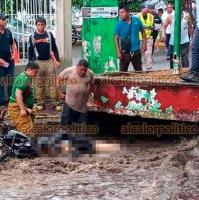 La tarde de este martes un motociclista de nacionalidad extranjera perdió la vida, luego que fuera arrastrado por la corriente de agua que se generó en una calle de la zona centro de la ciudad de Catemaco, tras un fuerte aguacero que se registró durante el mediodía.
