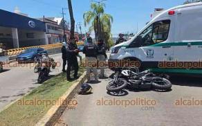 Un motociclista impactó su unidad contra una ambulancia del Instituto Mexicano del Seguro Social que realizaba maniobras de estacionamiento para recoger a un paciente en una clínica ubicada en la avenida Maestros Veracruzanos, antes de llegar a 20 de Noviembre, casi esquina con la agencia de autos Ford.