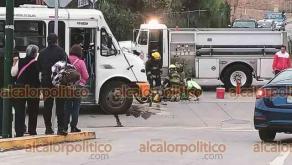 Paramédicos de MEDITEC auxiliaron la tarde de este domingo a un motociclista que resultó lesionado al chocar contra un autobús urbano en la avenida Tecnológico, en la Reserva de Xalapa.