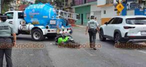 Motociclista se estrelló con pipa de gas en cruce de Miguel Alemán y Ruiz Cortines, en Xalapa