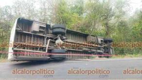 Un autobús de pasajeros de la línea Hola que cubre la ruta Tuxpan-Tampico volcó la tarde de este sábado con saldo de una persona muerta y cinco pasajeros lesionados.
