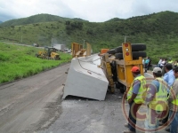 Nuevamente un accidente carretero se suscitó hace unos momentos en donde una persona perdió la vida al caerle un “ballena” de aproximados 25 metros de largo y 80 toneladas de peso; se presume que el accidente se generó al reventarse los soportes que sujetaban la estructura.