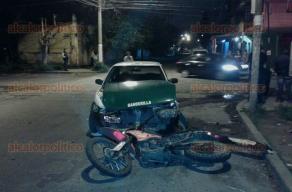 El fatal accidente sucedió a las 19:40 horas cuando el Taxi Nissan número económico 52 de la localidad Banderilla y un motociclista se encontraron en el crucero de las calles Francisco Moreno y Ezequiel Alatriste, protagonizando un fuerte choque.