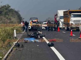 Un motociclista perdió la vida y otro resultó gravemente lesionado la tarde de este jueves, luego de registrarse el accidente sobre la autopista Cardel–Veracruz, a la altura del aserradero muy cerca a la caseta de peaje de La Antigua.