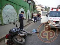 En un descuido perdió el control de la moto y derrapó con la unidad unos 15 metros sobre el pavimento y su cuerpo fue a chocar contra un poste de Telmex, mientras la moto marca Honda de color negro, siguió con la trayectoria quedando a unos 6 metros del cuerpo del infortunado servidor público.