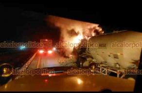 El choque e incendio de una tolva contra una plataforma con doble remolque, ocurrido la madruga de este jueves en la autopista Córdoba-Veracruz, dejó una persona muerta.