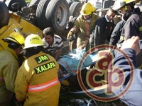 En el accidente murió el conductor del tráiler al quedar aplastado por la cabina del tracto camión, cuyo cuerpo fue rescatado por socorristas de Cruz Roja y Cruz Ámbar.