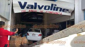 Una mujer estrelló su automóvil contra un negocio de autopartes en la avenida Cuauhtémoc, en la ciudad de Veracruz; el hecho dejó 2 personas heridas y daños materiales cuantiosos.