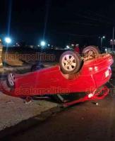 En la carretera federal Boca del Río-Antón Lizardo, en la denominada Riviera Veracruzana, una camioneta colisionó a un vehículo, el cual volcó y terminó con las llantas para arriba y dos personas lesionadas.