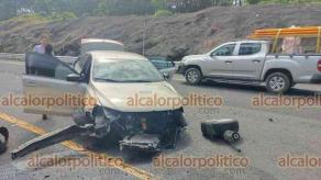 La mañana de este martes, en la autopista Perote-Xalapa, a la altura de la caseta de Las Vigas con dirección hacia la Capital, una empleada de la Secretaría de Educación de Veracruz (SEV) que conducía un automóvil Jetta color arena perdió el control de la unidad y se impactó contra el muro de contención central.