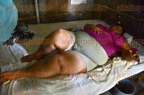 Mireya Espejo Ronzón, de 51 años y 180 kilos, lleva tres meses postrada en su cama, ubicada en una vivienda humilde en la localidad de Piedras Negras en Tlalixcoyan, derivado de obesidad mórbida y otros padecimientos.