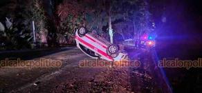La madrugada de este sábado se registró la volcadura de un taxi en la carretera Coatepec-Xico, a la altura de la desviación hacia la localidad de Las Puentes, municipio de Coatepec.