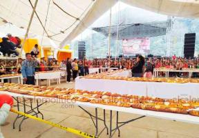 La monumental Rosca de Reyes fue elaborada por la panadería La Bajadita, propiedad del señor Sebastián Xochicale Hernández, ubicada en el Barrio Tepeixco.