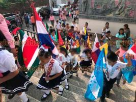 Con las banderas de todos los países que integran la ONU, los alumnos se concentraron en el parque Juárez, donde saludaron a las autoridades municipales.