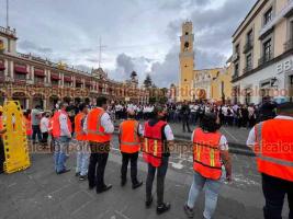 Los burócratas estatales y municipales empezaron a salir de los edificios y concentrarse en las explanadas de la plaza Lerdo y del parque Juárez; lo que habían hecho en simulación al mediodía.