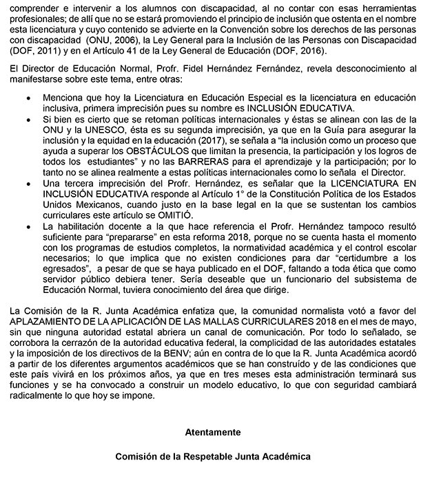 No escucharon razones de la Junta Académica de la Normal “Enrique C. Rébsamen”