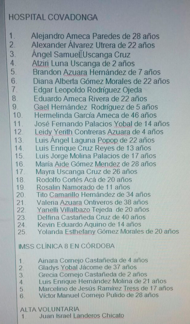 Esta es la lista actualizada de lesionados que están siendo atendidos en hospitales.