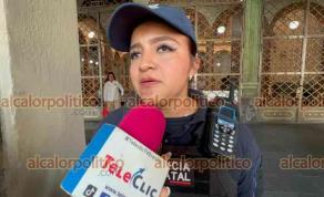 De la Secretaría de Seguridad Pública (SSP) Adialy Carvajal Ventura cubrió su horario como guardia policiaco en la zona centro de Xalapa y agradeció el apoyo que le da su madre al cuidar a su pequeña hija de 3 años, mientras ella cubre sus turnos.