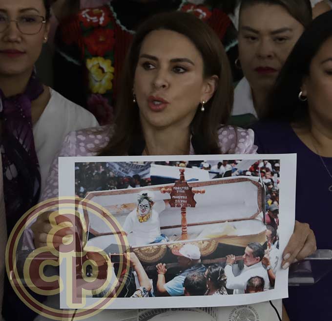 Al denunciar violencia de género, la diputada federal por el PRI, Carolina Viggiano, mostró la fotografía del secretario de Gobierno de Veracruz, Eric Cisneros, cargando el ataúd con el nombre de la ministra presidenta de la Suprema Corte, Norma Piña.