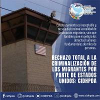 El Consejo Iberoamericano de la Comisión Iberoamericana de Derechos Humanos para el Desarrollo de las Américas (CIDHPDA) expresa su enérgico rechazo a las recientes políticas del gobierno de los Estados Unidos que tratan a los migrantes indocumentados como "criminales", equiparándolos indebidamente con terroristas al permitir su detención y reclusión en la Base Militar de Guantánamo, lugar donde se tienen celdas destinadas a las personas acusadas de terrorismo.
