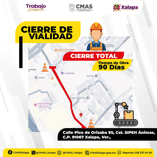 CMAS Xalapa anuncia cierre de calle
