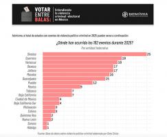“Veracruz se posiciona como la tercera entidad más violenta para la política en México en lo que va de 2025. De enero a abril de este año, la entidad registró 18 ataques contra actores políticos, 8 de ellos aspirantes a cargos públicos”, puntualizó la agrupación.