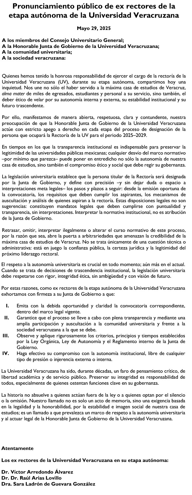 Exrectores piden a Junta de Gobierno UV se apegue a la ley en relevo de Rectoría