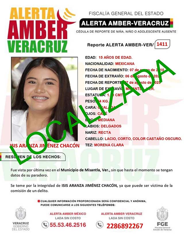 Isis Aranza Jiménez Chacón, localizada