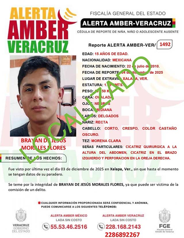 ALERTA AMBER- VERACRUZ 1492por el adolescenteBrayan