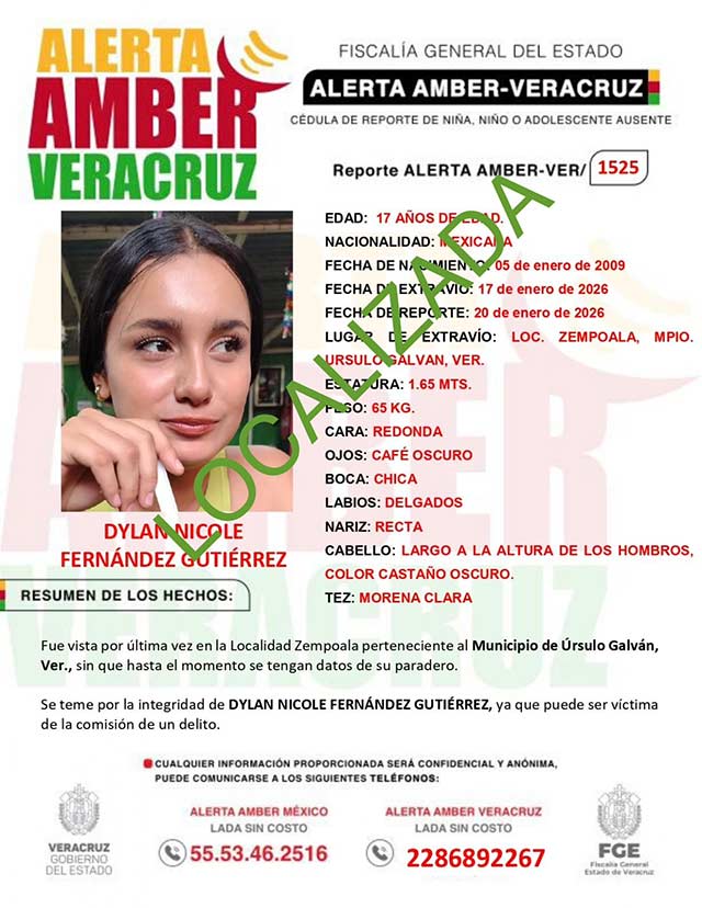 El programa AlertaAmber Veracruz, agradece sucolaboración e informa la DESACTIVACIÓN de la