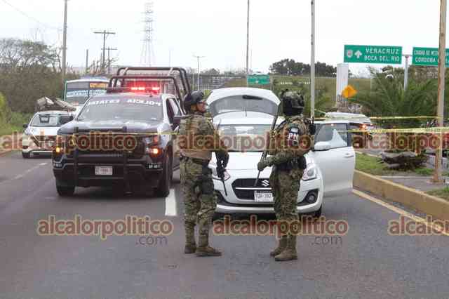 Taxi se impacta contra una roca en la carretera Misantla-Xalapa; no hubo heridos