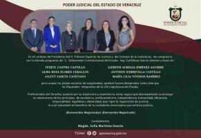 A través del sitio web del Poder Judicial, la magistrada presidenta del Tribunal Superior de Justicia, Sofía Martínez Huerta, dio la bienvenida a las nuevas cinco Magistradas y al Magistrado que fueron nombrados la semana pasada para un periodo de 10 años.