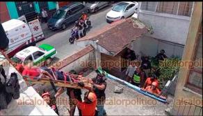 La tarde de este viernes, en el Centro Histórico de Xalapa, un joven obrero cayó del tercer piso de edificio en la calle Diego Leño, siendo trasladado a un hospital.