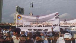 En pequeños contingentes que representaron a cada sindicato, la clase obrera se dio cita desde las 8:00 horas de este domingo en la macroplaza del Malecón de la ciudad de Veracruz en sustitución del desfile que se venía realizando año con año para conmemorar el Día del Trabajo.