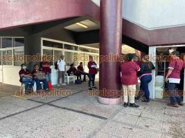 Trabajadores de limpieza del Hospital de Alta Especialidad de Veracruz, realizan un paro de brazos caídos por la falta de pago de la última quincena. Son empleados de la empresa Limpieza Especializada Industrial y Hospitalaria (LEIH), que nuevamente retrasaron sus depósitos. El compromiso era que se les pagaría los días 5 y 20 de cada mes.