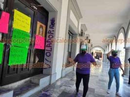 Se plantaron afuera del acceso principal del Palacio Municipal de Veracruz gritando: “Que salga el violador”.