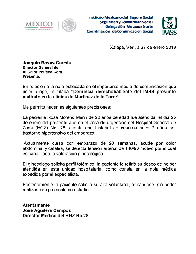 Es referente a la nota publicada el martes en este medio que afirma que mujer embarazada no había sido atendida