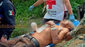 Luego de varios minutos de búsqueda, las autoridades localizaron la vivienda, donde encontraron a un hombre de edad avanzada gravemente herido y con la mano derecha cercenada, misma que fue hallada a escasos metros del inmueble.