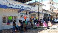 Padres de familia tomaron la escuela primaria “Leona Vicario”, exigen que les envíen un conserje y un maestro de educación física, pues desde hace un año no tienen.
