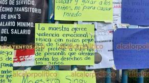 El Jardín de Niños “Juan Enrique Dunant”, ubicado en la colonia San Nicolás, en Córdoba, fue tomado por padres de familia que acusan a la docente Cindy “N” de acoso y maltrato infantil.