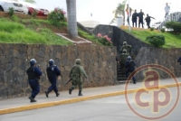 Al mismo tiempo, dada la alarma oficial, se ordenó la entrada de elementos de Seguridad Pública a la Plaza, quienes rodearon el centro comercial, con el apoyo de elementos del Ejército y realizaron un intenso operativo en la zona y en otros puntos de la ciudad para dar con el paradero de los agresores.